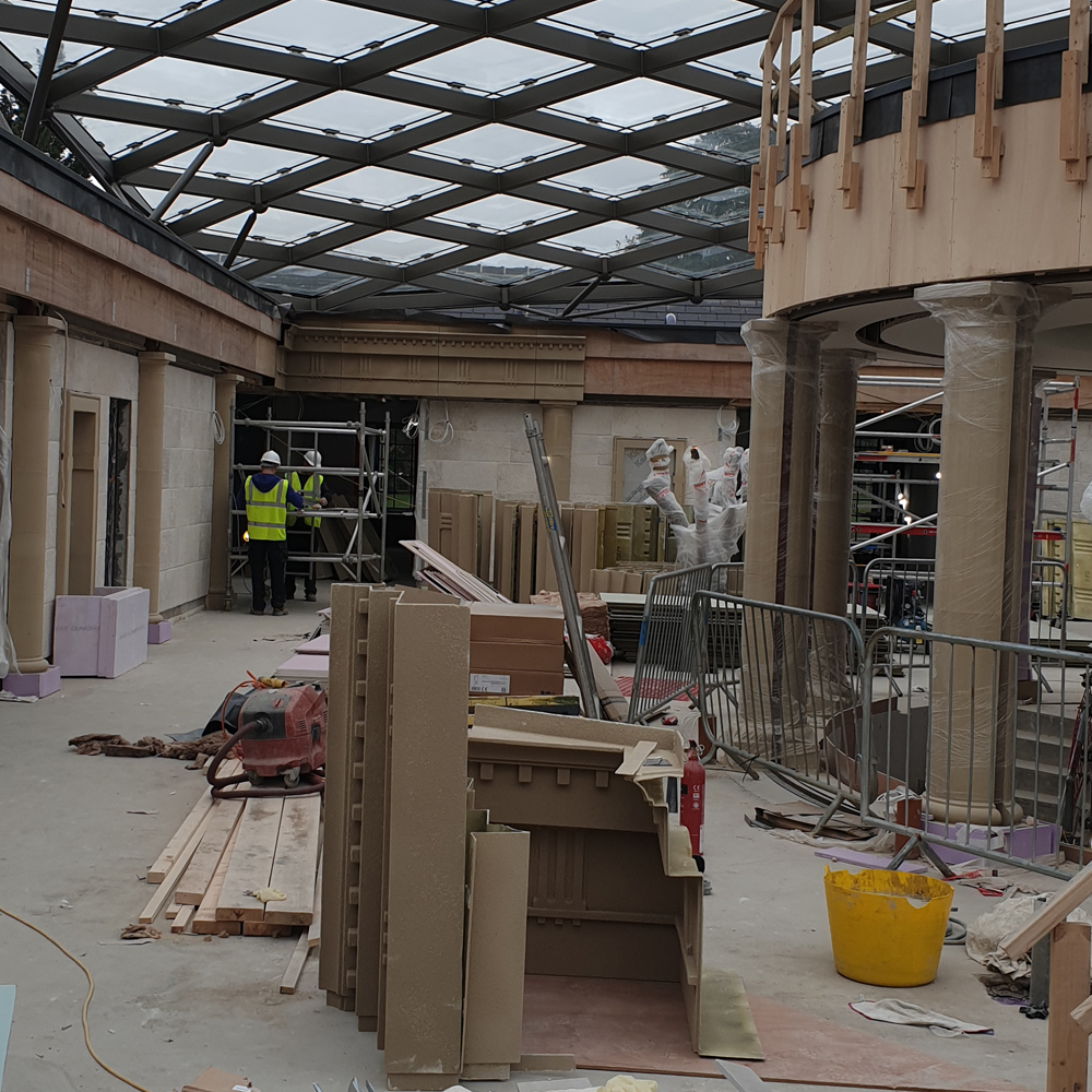 This prominent project involved the comprehensive refurbishment of an existing Grade II listed hall, alongside the construction of a new state-of-the-art spa and wellness retreat. R N Wooler successfully transformed the historic hall into a luxury 'Relais Chateaux' hotel, featuring exquisite rooms and suites, as well as a diverse range of dining options. Simpson Patterns Ltd was commissioned to design the GRP columns, facades, and wall recesses, collaborating closely with an application company to achieve a stone-like texture for the finished products. Additionally, Simpson Patterns Ltd partnered with R N Wooler to develop an effective fastening system and joining mechanism for the columns, façade, and wall recesses. We are pleased to have completed our scope of work on time and within budget, and to have been selected for this noteworthy aspect of the £70 million renovation project aimed at transforming Grantley Hall into one of the country's prestigious country house hotels.
